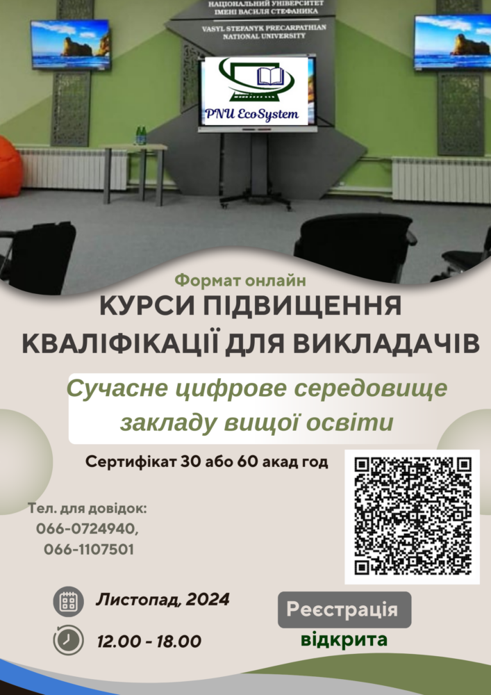 Центр інноваційних освітніх технологій «PNU EcoSystem» Прикарпатського національного університету імені Василя Стефаника запрошує науково-педагогічних працівників, які забезпечують навчання здобувачів освіти у закладах фахової передвищої та вищої освіти, на курси підвищення кваліфікації на тему: Сучасне цифрове середовище закладу вищої освіти, які Читати далі