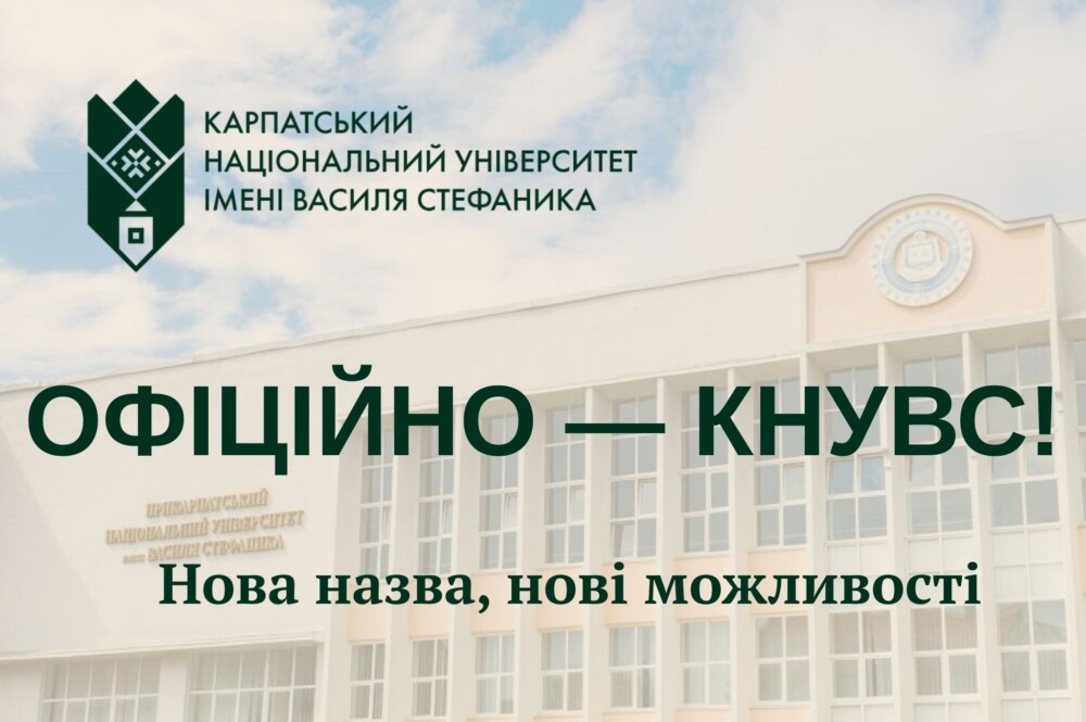 Від 15 серпня 2025 р. університет офіційно отримав нову назву — Карпатський національний університет імені Василя Стефаника. Завершено всі юридичні процедури. Для нас це не просто формальність — це крок у майбутнє, який відображає наш розвиток, міжнародні амбіції та місію. Читати далі
