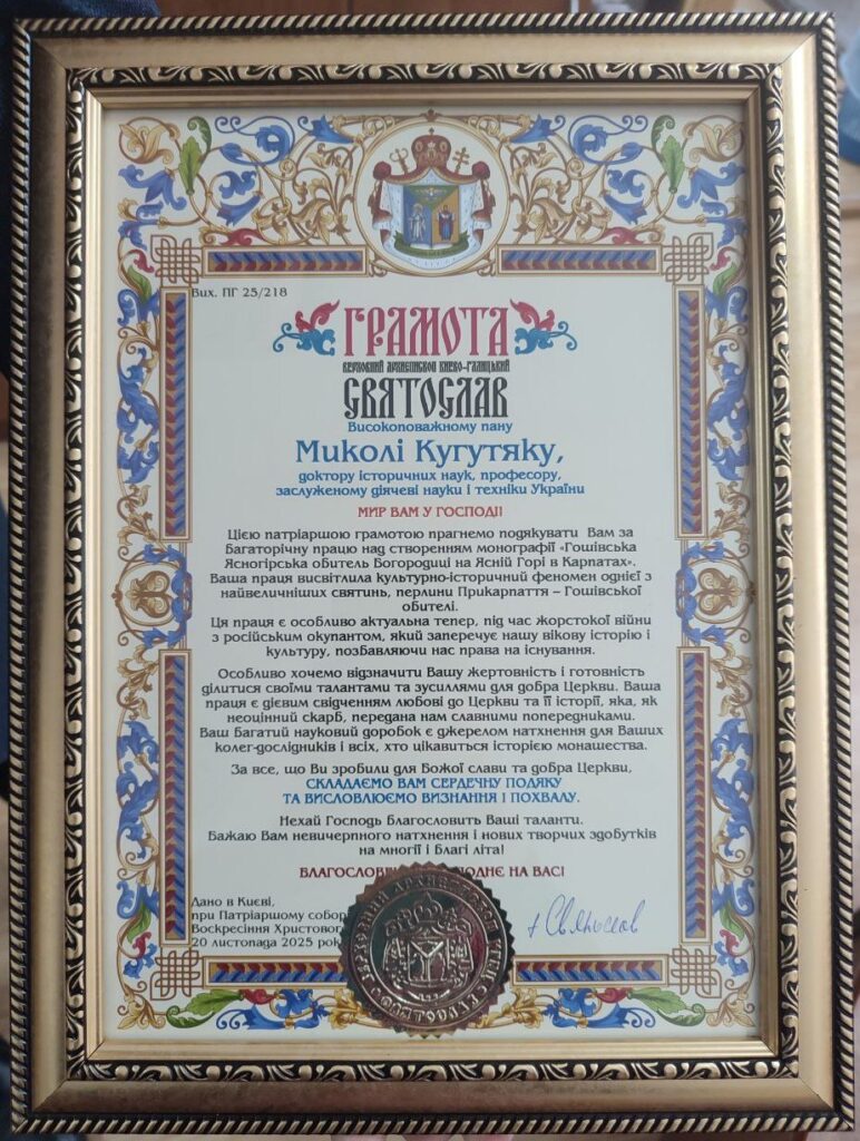 Грамота Верховного Архиєпископа Києво-Галицького, Блаженнішого Святослава Шевчука